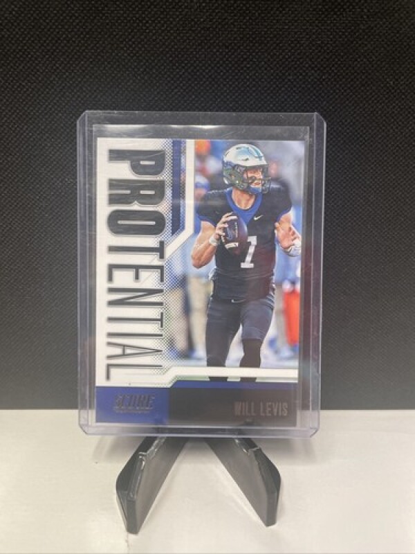 This is a 2023 Panini Score Potential #3 Will Levis trading card, featuring the rookie player from the National Collegiate Athletic Association (NCAA) and National Football League (NFL). The card is made of high-quality card stock material, and it is an original licensed reprint.
