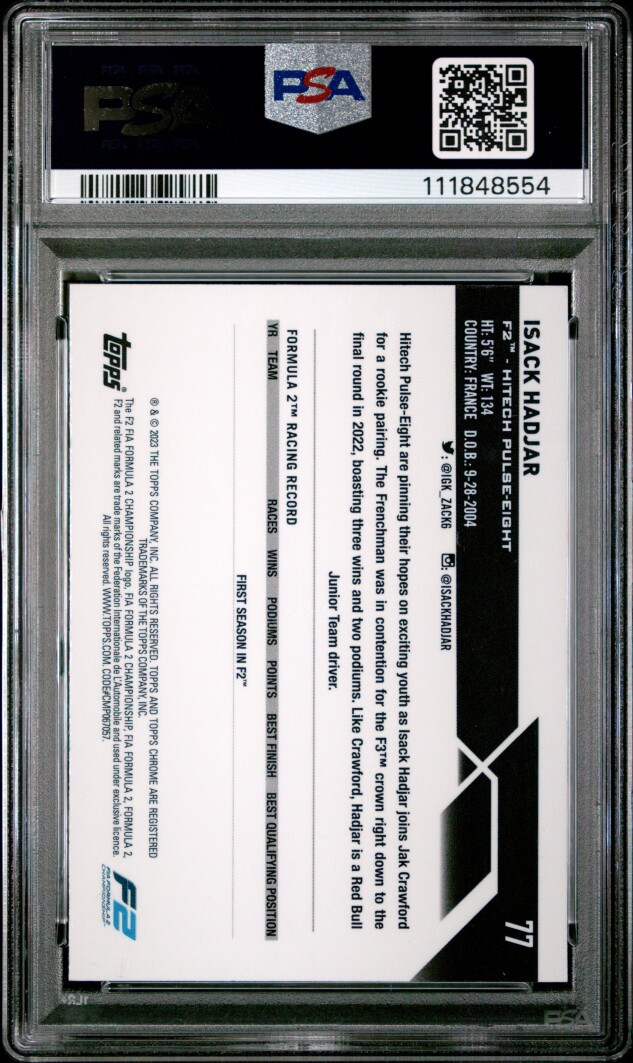 2023 Sapphire F1 Future Stars F2 Isack Hadjar /50 PSA 9. Reach out with any questions!