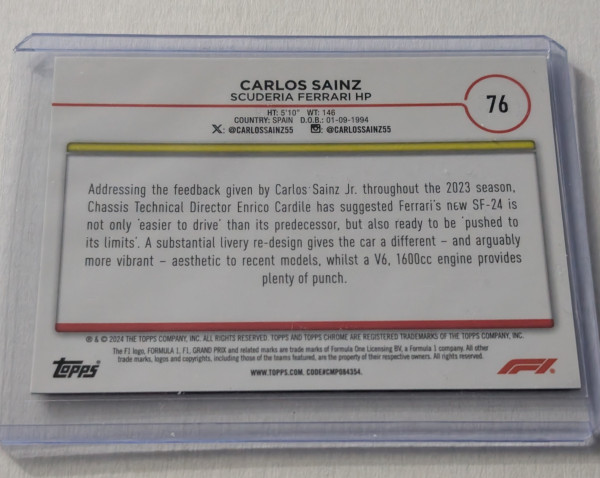 2024 Topps Chrome F1 Carlos Sainz #76 Black Raywave 1/1