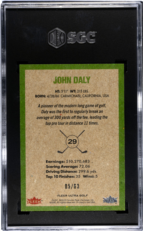 You are purchasing a 2024 Fleer Ultra John Daly #29 '63 Design SGC 9.5. You will receive the exact item in the photographs. Thank you for looking.