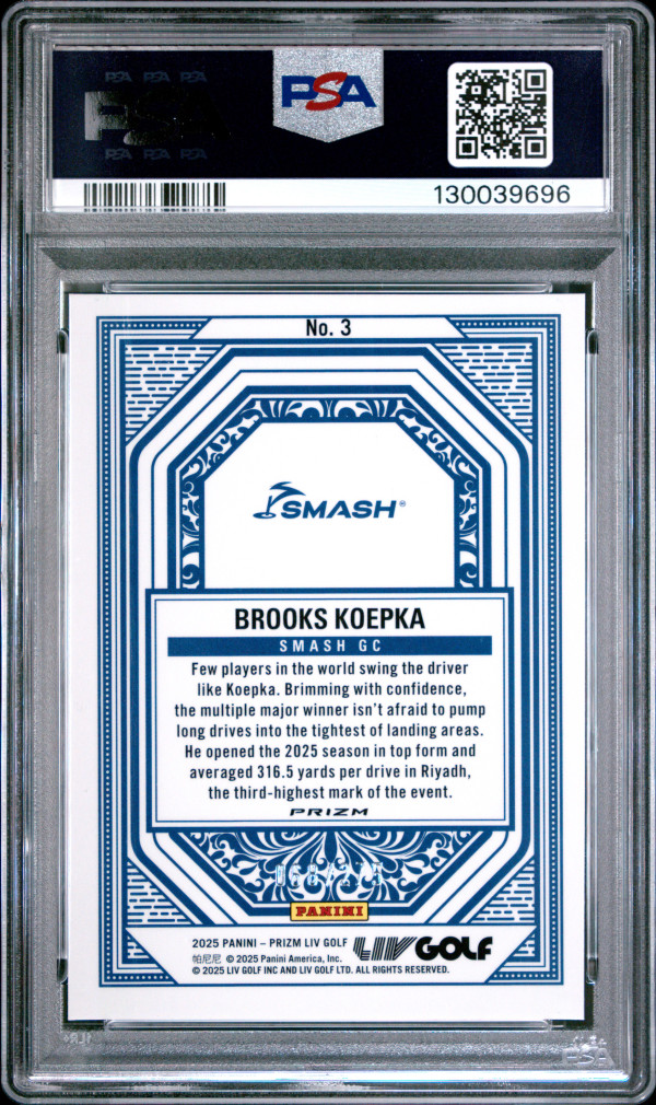 You are purchasing a 2025 Panini Prizm LIV Golf Aces Brooks Koepka #3 Teal PSA 9. You will receive the exact item in the photographs. Thank you for looking. Check our SM for news and updates 2Kingscards
