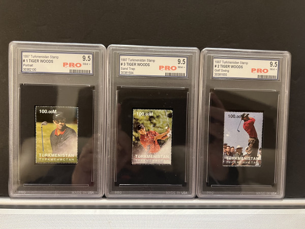 TIGER WOODS - ROOKIE - (Lot of 3) 1997 Turkmenistan Stamps #1 - #3 MINT+ 9.5