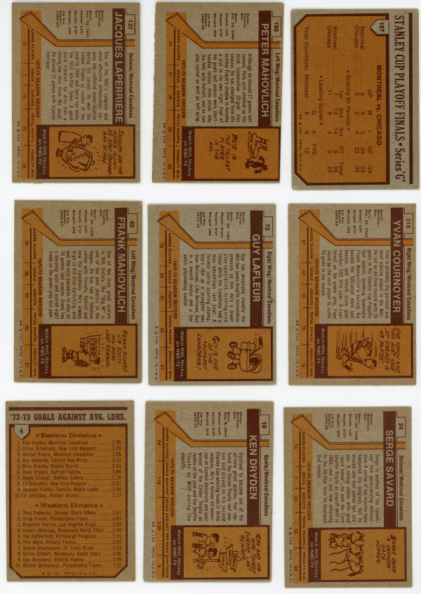 1973-74 Topps Hockey Montreal Canadiens lot of 9 FR-VG Lafleur Dryden +++