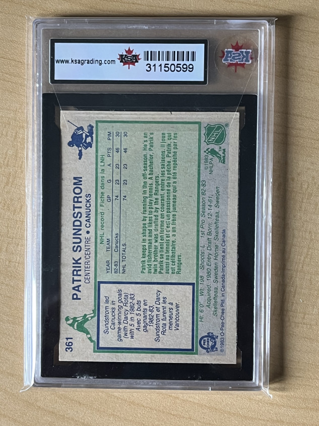 You are purchasing a 1983-84 O-Pee-Chee #361 Patrick Sundstrom Rookie KSA 8 —VVCARDS—I do my best to assess the condition of the card and describe it accurately. Please review the pictures in the listing for condition as this is the exact card you will receive. The card is located in Canada and will be shipped using Canada Post. Thank you for looking.