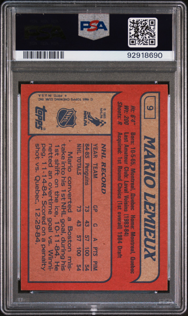 1985-86 TOPPS MARIO LEMIEUX RC PSA 7.