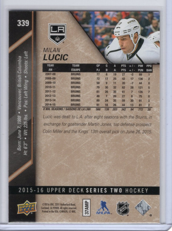 You are purchasing a 1988 2015-16 Upper Deck UD Exclusives Series Two Milan Lucic #339 /7. You will receive the exact item in the photographs. Thank you for looking.