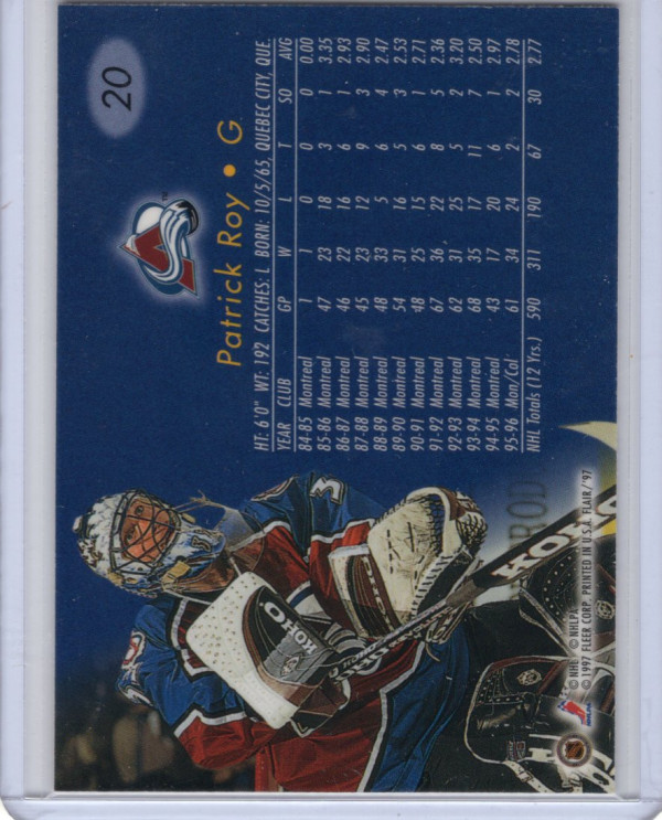 You are purchasing a 1997-98 Fleer All-Star Patrick Roy #20. You will receive the exact item in the photographs. Thank you for looking.