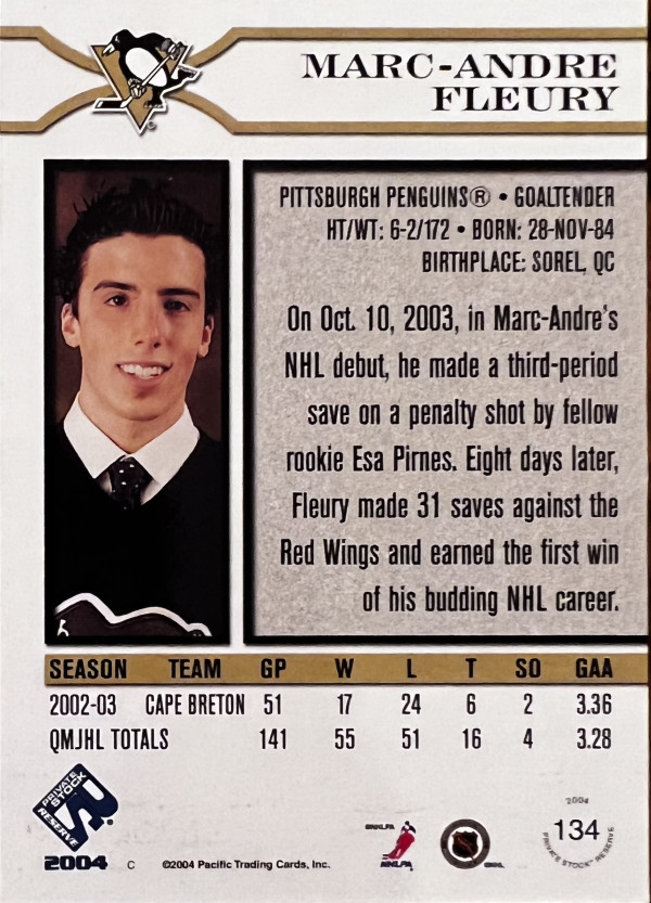 2003-04 Pacific Private Stock Reserve Red RC /225, Marc-André Fleury