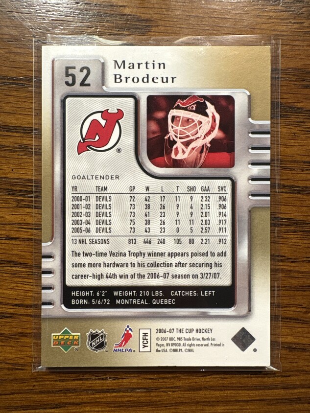2006-07 Upper Deck The Cup Martin Brodeur Gold Base /25 Devils