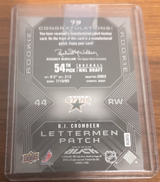 2008-09 Upper Deck UD Black Rookie Lettermen /399 BJ Crombeen #79 Dallas Stars Letter "R" **LOPSIDED TRADE OFFER PLEASE READ**