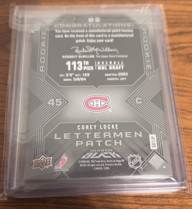 2008-09 Upper Deck UD Black Rookie Lettermen /399 Corey Locke #82 Montreal Canadiens Letter "C"