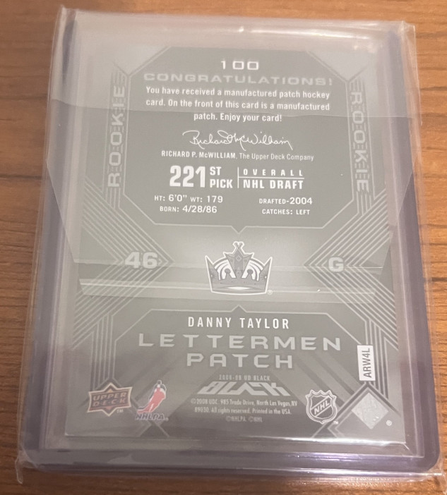 2008-09 Upper Deck UD Black Rookie Lettermen /399 Danny Taylor #100 Los Angele Kings Letter "A"