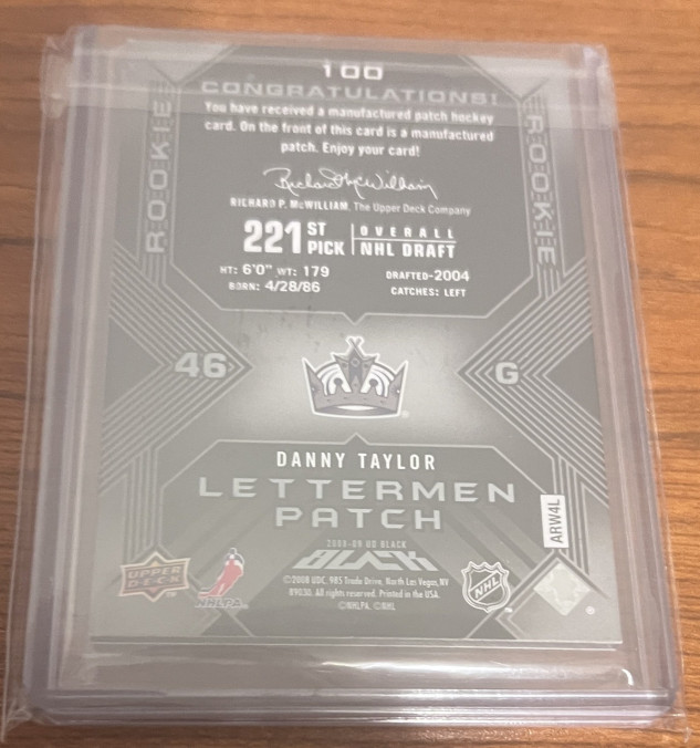 2008-09 Upper Deck UD Black Rookie Lettermen /399 Danny Taylor #100 Los Angele Kings Letter "O"