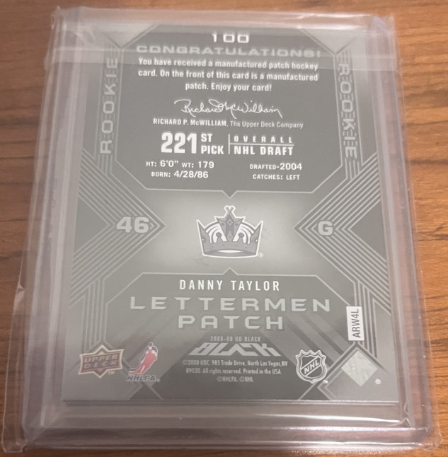 2008-09 Upper Deck UD Black Rookie Lettermen /399 Danny Taylor #100 Los Angele Kings Letter "R"