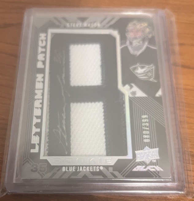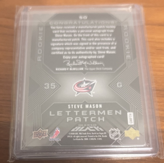 2008-09 Upper Deck UD Black Rookie Lettermen /399 Steve Mason #50 AUTO Columbus Blue Jackets Letter "A". Serial #080/399. While I will consider trades, I am more interested in selling. PLEASE look at my profile because what I will accept in trade is very specific. If you offer me in trade something that is not listed in my profile, I will not reply. Thank you for looking.