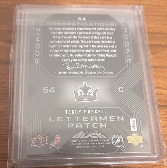 2008-09 Upper Deck UD Black Rookie Lettermen /399 Teddy Purcell #54 AUTO Los Angele Kings Letter "L"