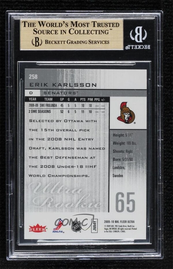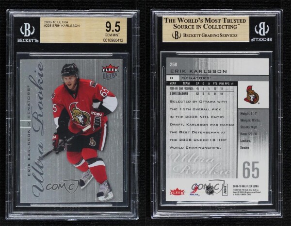You are purchasing a 2009-10 Fleer Ultra Erik Karlsson #258 [Base] Rookie Base Set BGS 9.5. You will receive the exact item in the photographs. Thank you for looking.