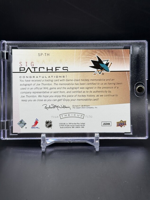 You are purchasing a 2009-10 Upper Deck The Cup Joe Thornton #SP-TH Patch Short Print Memorabilia Insert. You will receive the exact item in the photographs. Thank you for looking.
