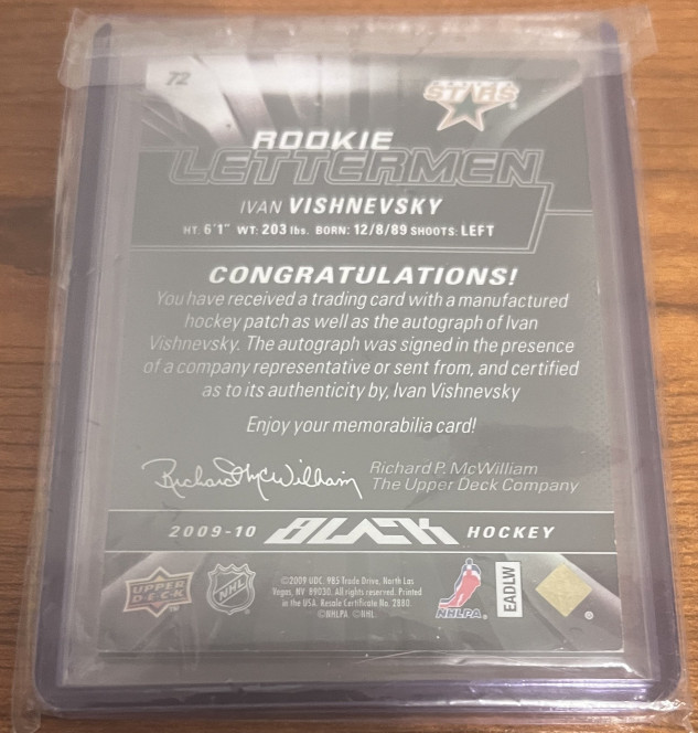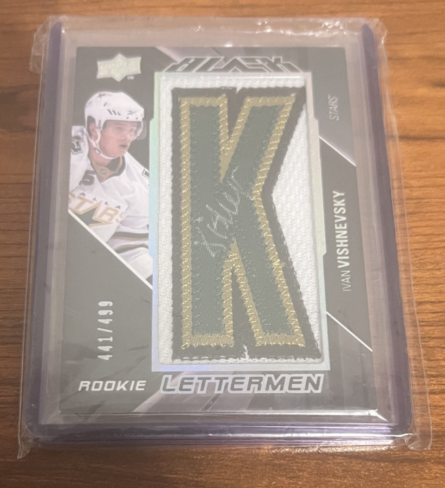 2009-10 Upper Deck UD Black Rookie Lettermen /499 Ivan Vishnevskiy Vishnevsky #72 AUTO Dallas Stars Letter "K". While I will consider trades, I am more interested in selling. PLEASE look at my profile because what I will accept in trade is very specific. If you offer me in trade something that is not listed in my profile, I will not reply. Thank you for looking.