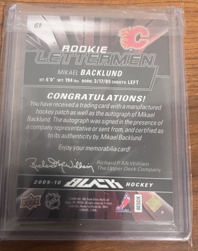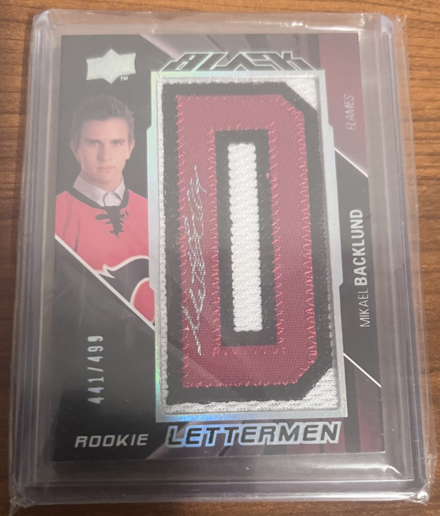 2009-10 Upper Deck UD Black Rookie Lettermen /499 Mikael Backlund #61 AUTO Calgary Flames Letter "D". While I will consider trades, I am more interested in selling. PLEASE look at my profile because what I will accept in trade is very specific. If you offer me in trade something that is not listed in my profile, I will not reply. Thank you for looking.