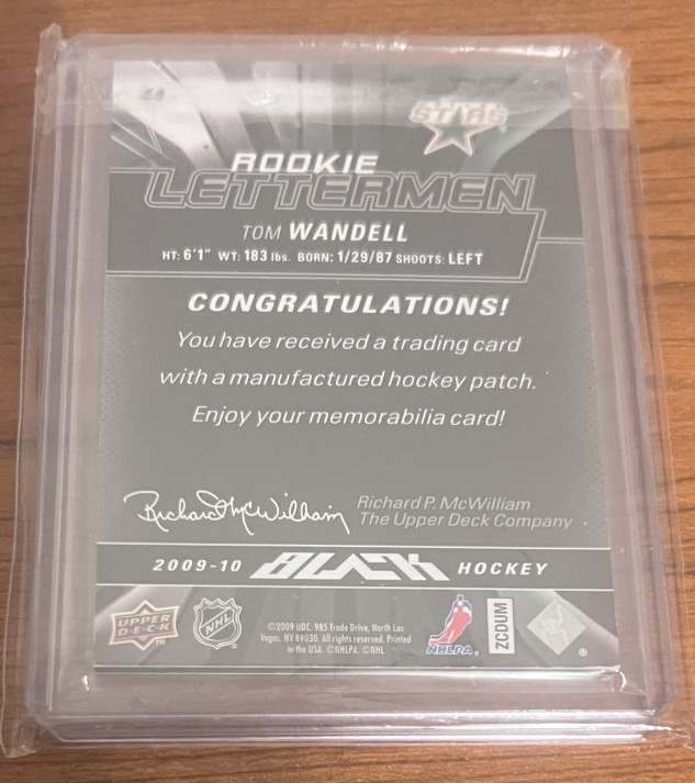 2009-10 Upper Deck UD Black Rookie Lettermen /499 Tom Wandell #44 Dallas Stars Letter "N". While I will consider trades, I am more interested in selling. PLEASE look at my profile because what I will accept in trade is very specific. If you offer me in trade something that is not listed in my profile, I will not reply. Thank you for looking.