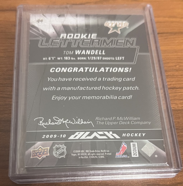 2009-10 Upper Deck UD Black Rookie Lettermen /499 Tom Wandell #44 Dallas Stars Letter "W". While I will consider trades, I am more interested in selling. PLEASE look at my profile because what I will accept in trade is very specific. If you offer me in trade something that is not listed in my profile, I will not reply. Thank you for looking.