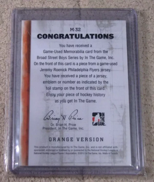 2011-12 ITG Broad Street Boys Jeremy Roenick Game-Used Jersey Orange /10