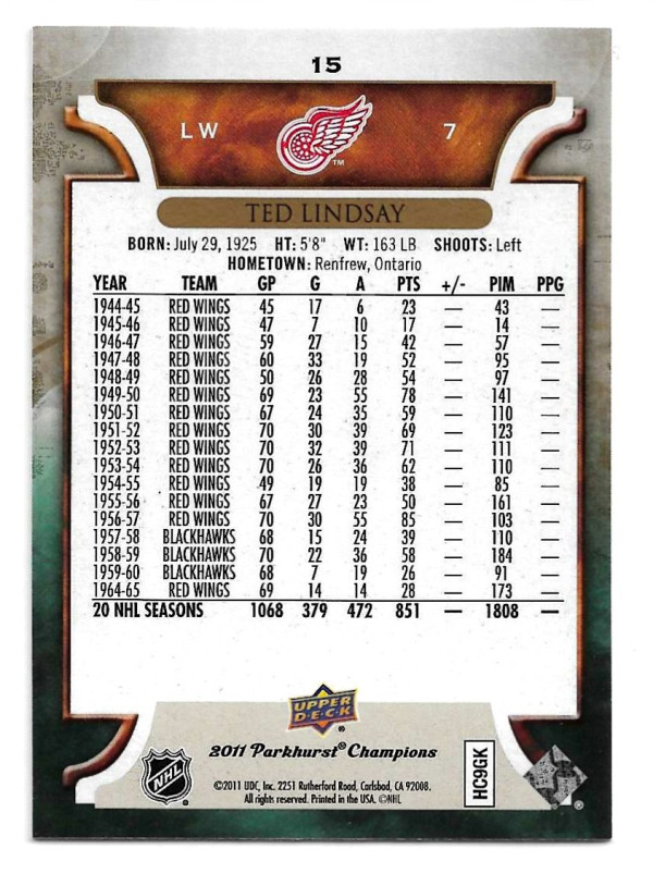 2011-12 PARKHURST CHAMPIONS #15 TED LINDSAY
