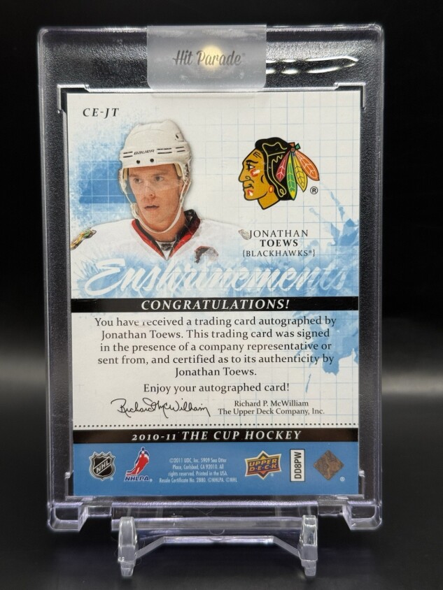You are purchasing a 2011 Upper Deck The Cup Enshrinements Autograph Jonathan Toews #CE-JT Autograph. You will receive the exact item in the photographs. Thank you for looking.