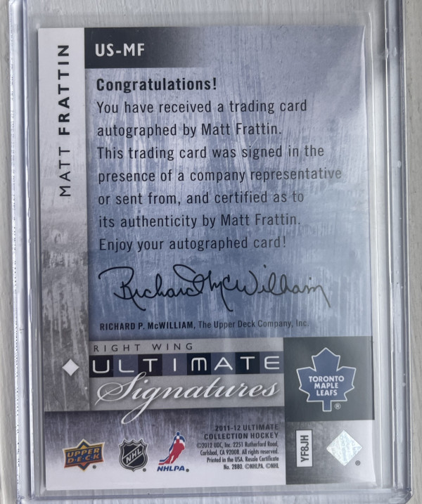 2011-12 UPPER DECK ULTIMATE COLLECTION MATT FRATTIN ROOKIE SIGNATURE AUTO #US-MF