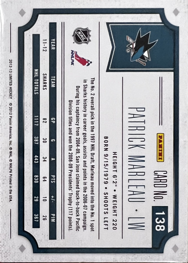 2012-13 Panini Limited Emerald /5, Patrick Marleau
