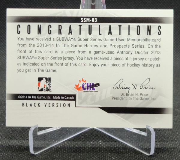 2013-14 ITG Heroes and Prospects Subway Series Jersey Patches #SSM03 Anthony Duclair (Black Version)