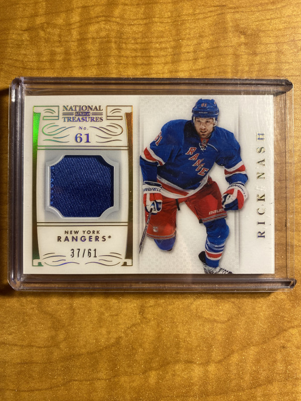 2013-14 National Treasures Rick Nash Acetate Numbers Game Used Patch /61 Rangers