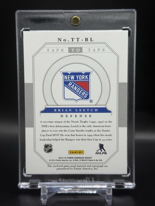 2013-14 Panini Dominion Brian Leetch Tape To Tape Auto /9 Game Used #TT-BL