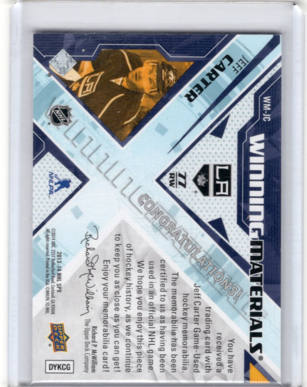 You are purchasing a 2013-14 Upper Deck SPx Winning Materials Jeff Carter #WM-JC Jersey Patch. You will receive the exact item in the photographs. Thank you for looking.