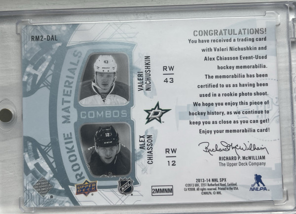 2013 SPx #RM2-DAL Alex Chiasson / Valeri Nichushkin Rookie Materials Combos