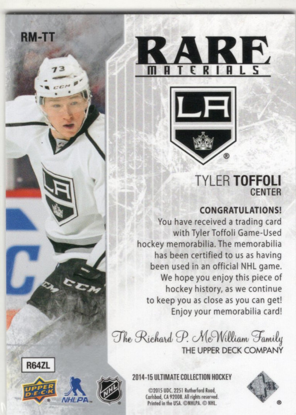 You are purchasing a 2014-15 Upper Deck Ultimate Collection Rare Materials Tyler Toffoli #RM-TT Jersey Patch 11/99. You will receive the exact item in the photographs. Thank you for looking.