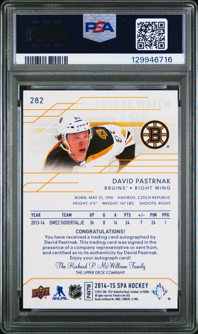 2014 Sp Authentic David Pastrnak Autograph