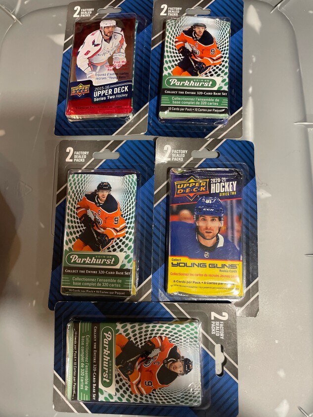 (5) factory sealed MJ Holding hangers with (2) packs per hanger. (10) packs total. One pack is obviously the 2015-16 Upper Deck Series 2 with a possible McDavid or Eichel rookie card. Let me know if you get it!