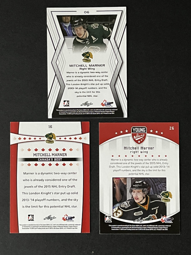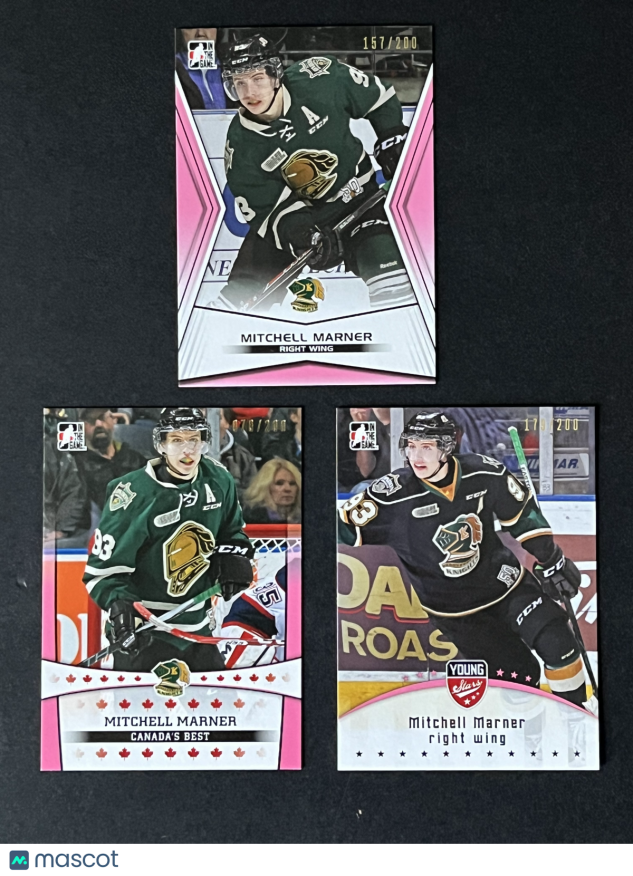 You are purchasing a 2015 ITG CHL Draft Pink /200 Player Set #6, 16, 26 Mitch Marner —VVCARDS—I do my best to assess the condition of the card and describe it accurately. Please review the pictures in the listing for condition as this is the exact card you will receive. The card is located in Canada and will be shipped using Canada Post. Thank you for looking.