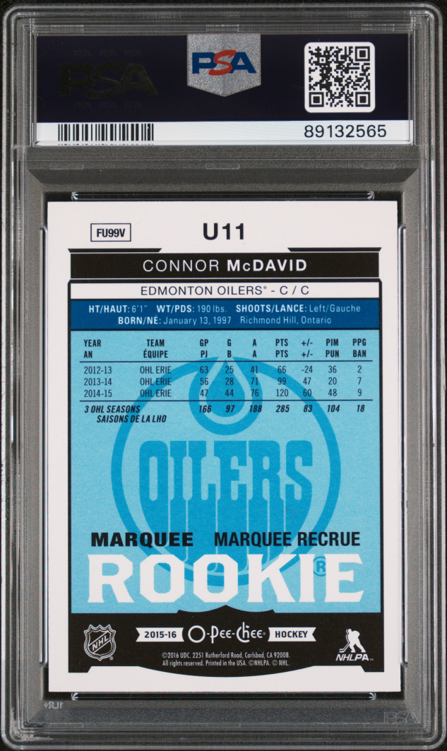 You are purchasing a 2015 O-Pee-Chee Update Connor McDavid #U11 Rainbow Foil PSA 7. You will receive the exact item in the photographs. Thank you for looking.