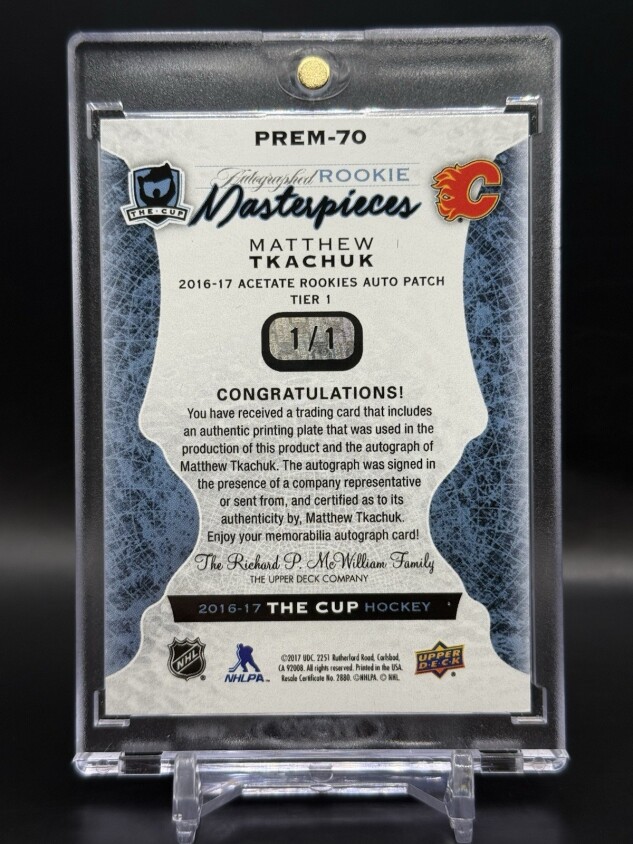You are purchasing a Matthew Tkachuk Masterpiece Printing Plate. You will receive the exact item in the photographs. Thank you for looking.