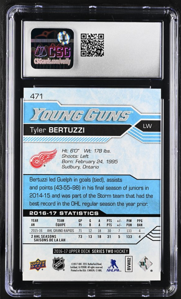 2016-17 Upper Deck Young Guns Tyler Bertuzzi CSG 10 Gem Mint 471