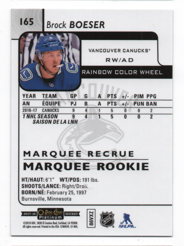 2017-18 O-Pee-Chee Platinum ePack Rainbow Color Wheel Parallel #165 Brock Boeser RC
