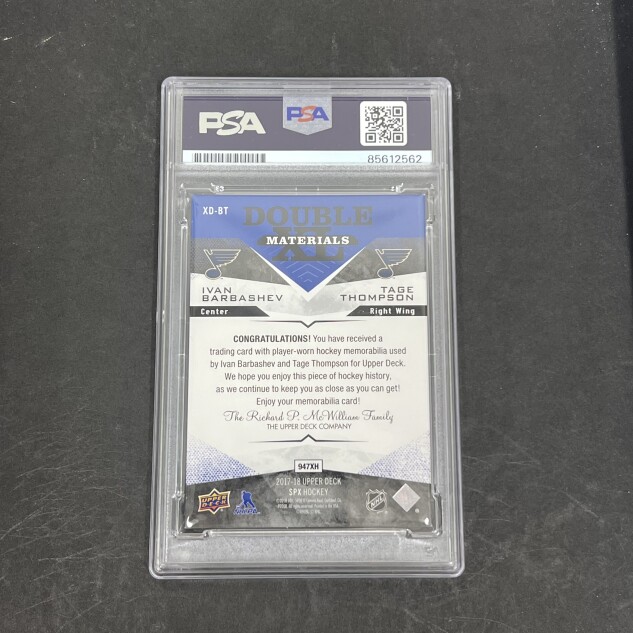 This listing features a 2017-18 Upper Deck #XD-BT Tage Thompson, professionally PSA authenticated.