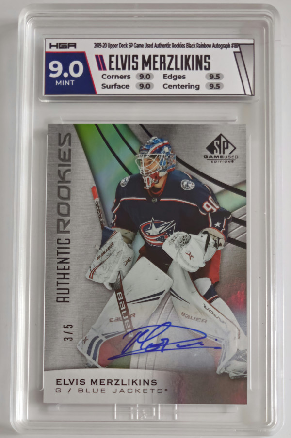 2019-20 SP Game Used Elvis Merzlikins Black Rainbow Rookie Auto /5 HGA 9