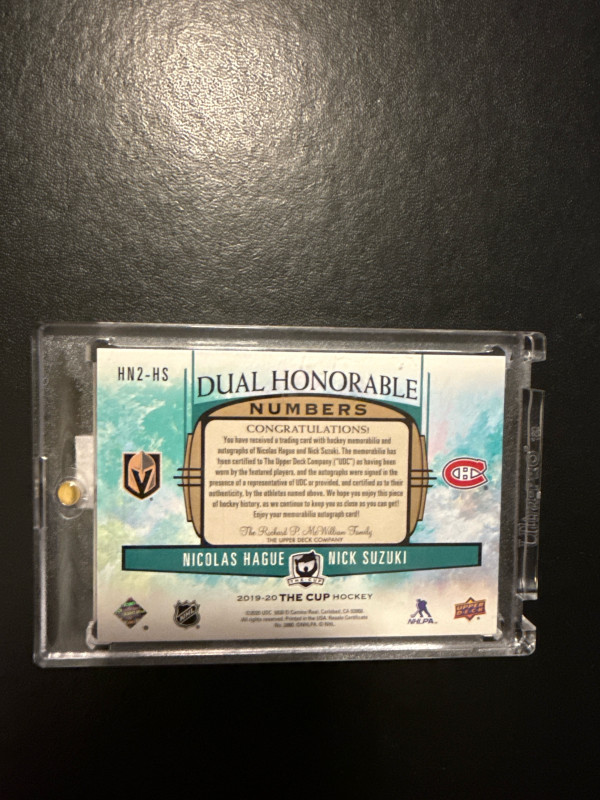 2019-20 The Cup Dual Honorable Numbers Rookie Nicolas Hague Nick Suzuki /14