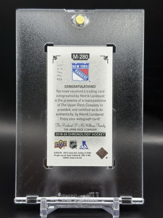 2019-20 UD Chronology Henrik Lundqvist Time Capsules Canvas Mini Auto /15 #M-280