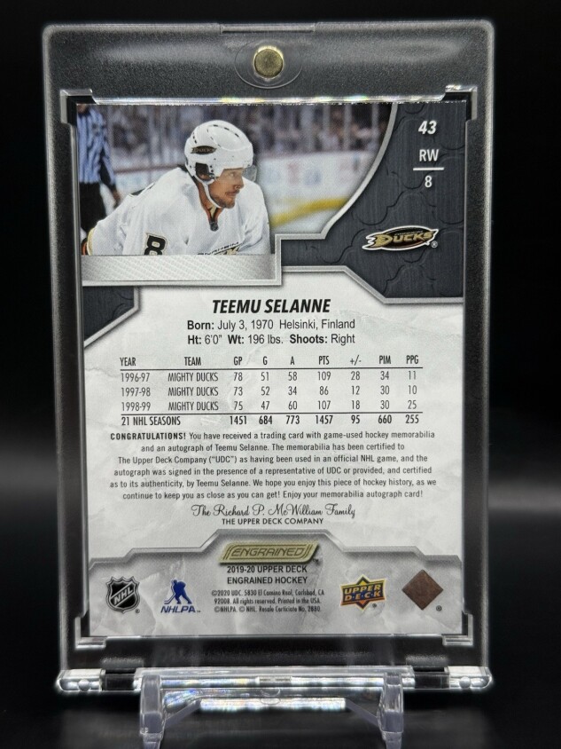 You are purchasing a 2019-20 Upper Deck Engrained Teemu Selanne #43 Patch Upper Deck. You will receive the exact item in the photographs. Thank you for looking.