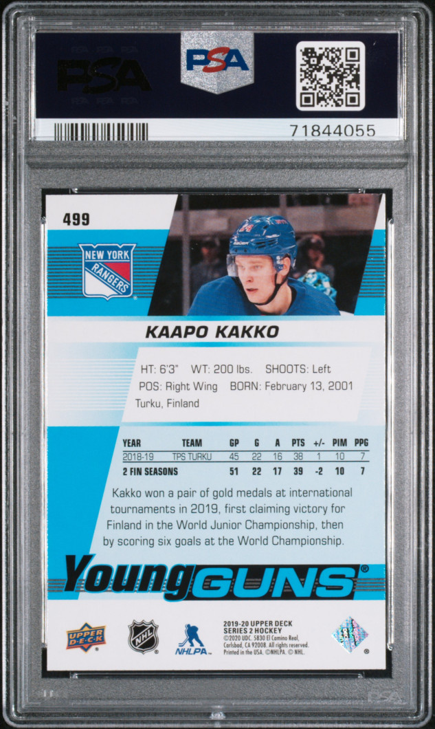 2019-20 Upper Deck Kaapo Kakko Young Guns PSA 8.5 NM-MT+ #499 Rangers Kraken